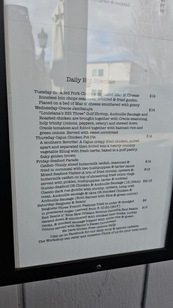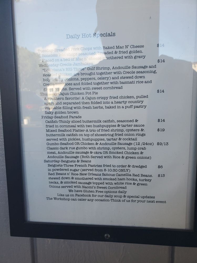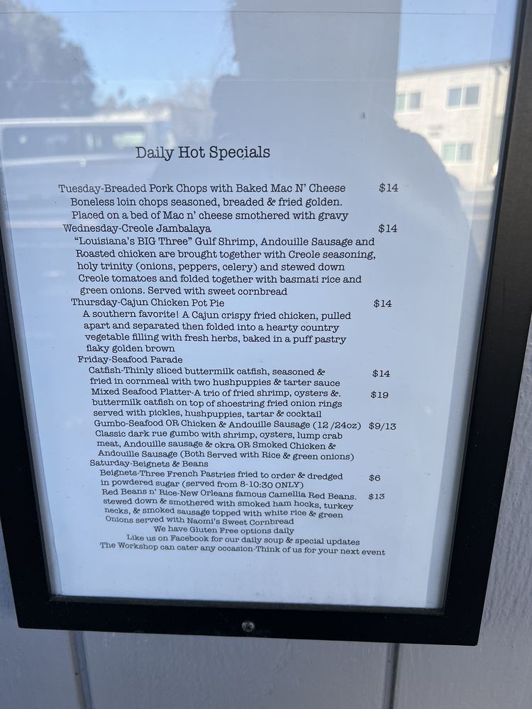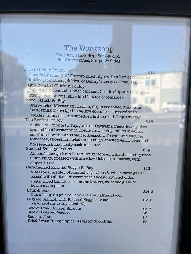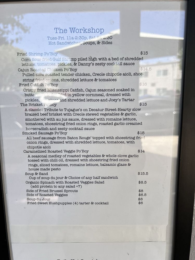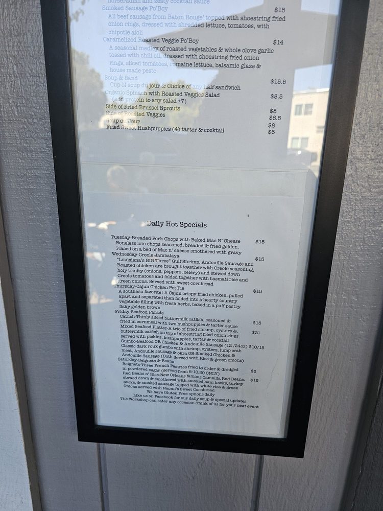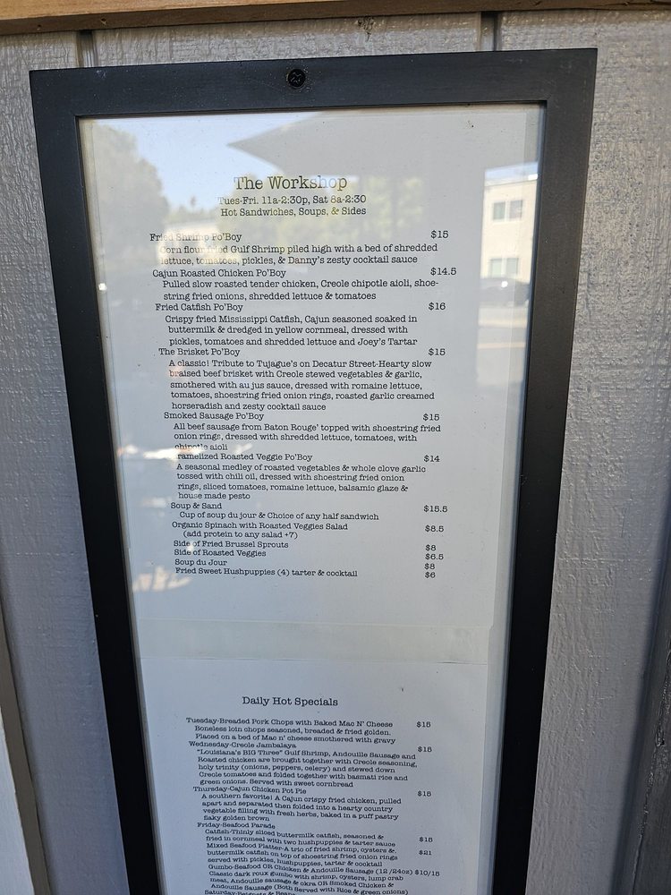 Located in Benicia, The Workshop is a Cajun/Creole seafood haven offering takeout, reservations, delivery, and even vegan options. With a casual yet classy ambiance, this eatery caters to a wide range of preferences, including limited vegetarian options and wheelchair accessibility. Customers rave about the outstanding menu, with favorites like jambalaya, po' boy sandwiches, beignets, and hush puppies. The Workshop's daily specials and attentive service add to its charm, making it a must-visit spot for those craving authentic Creole and Cajun flavors. The outdoor seating, happy hour specials, and drive-thru option provide convenience, while the covered outdoor seating and Wi-Fi make it a comfortable dining experience. If you're in the Bay Area and yearning for Southern flavors, look no further than The Workshop on Claverie Way.